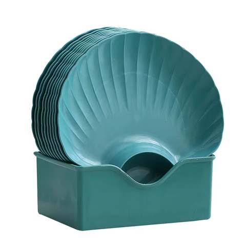 Placa de plástico con forma de concha costera Placas de contenedor de grado alimenticio Forma especial colorida Diseño de concha de perla