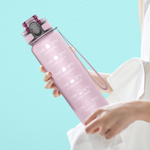 Botellas de agua deportivas con tapa, botella de agua de plástico sin BPA de 780ml, motivadora, con fabricante de tiempo para gimnasio