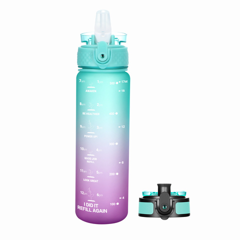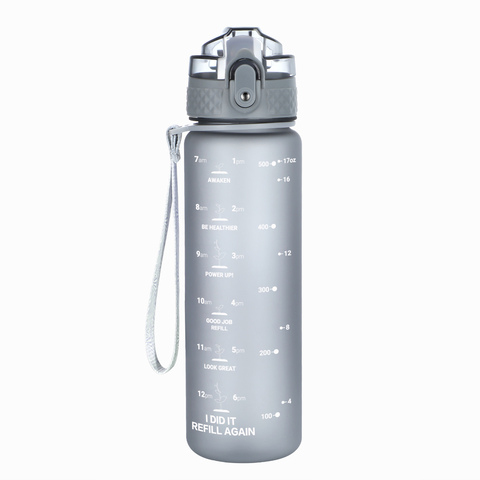 Botella de agua deportiva de plástico con tapa de pajita, botella de agua sin BPA de 500ml, con logotipo personalizado y generador de tiempo de Fitness