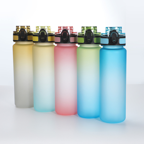Botella de agua de plástico motivacional de Color degradado de gran capacidad, botella de agua deportiva para entrenamiento y gimnasio