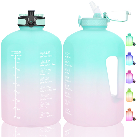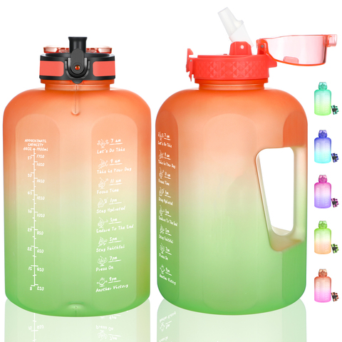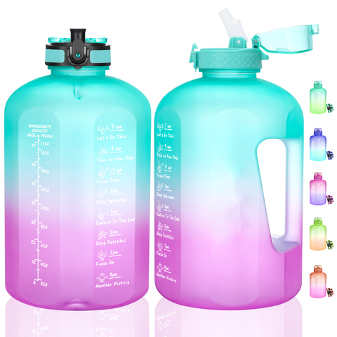 Botellas de agua grandes y respetuosas con el medio ambiente, botellas de plástico con pajita para deportes al aire libre, con fabricante de tiempo, 128oz, venta al por mayor