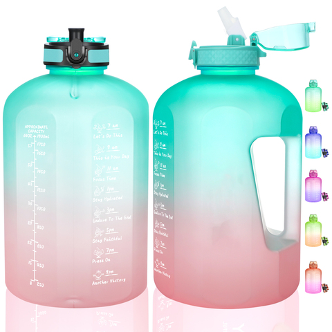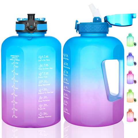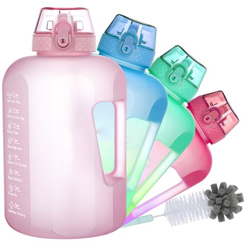 Botellas de agua grandes con tapa, de plástico deportivo, sin BPA, 64oz, motivaciones, para gimnasio