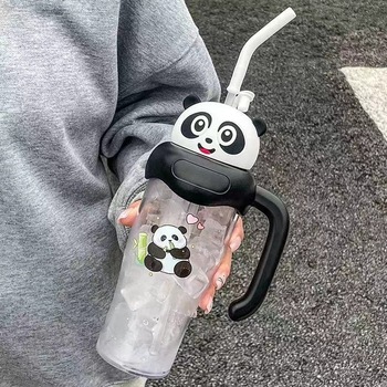 Kawaii kız büyük 750ml Tritan BPA içermeyen şeffaf plastik damlatmaz bardak açık taşınabilir araba Tumbler kolu/saman seyahat için